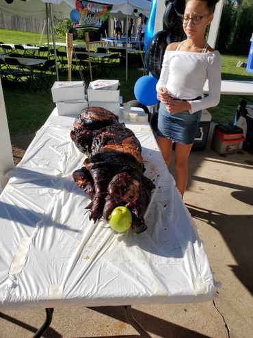 We take care of everything! We will completely prep the pig for the smoker roaster with our winning techniques, deliver the smoker, start the fire, place and monitor the pig, pull the pig, and take the smoker roaster away. Pig Price is additional. Within 15 mile radius.